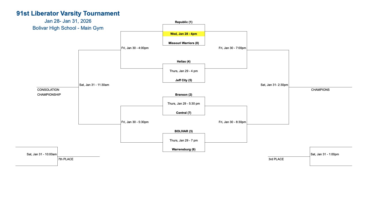 The 91st annual Liberator Basketball Tournament is scheduled for Jan. 29-31, 2026 at Bolivar High School.
