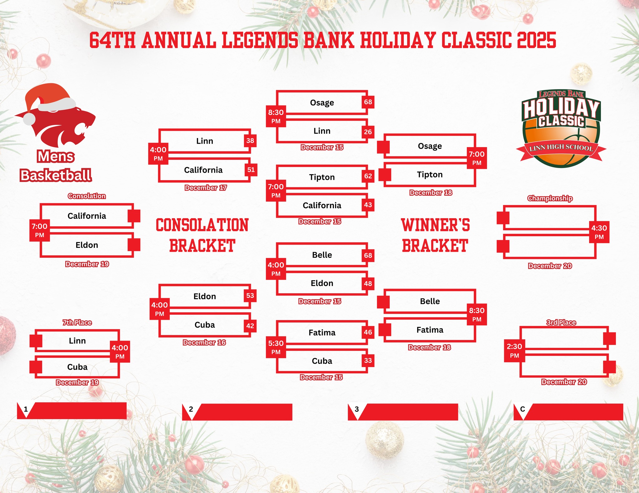 - Sat., Dec. 20, 2:30 p.m. – Tipton Cardinals vs. Belle (3rd place)